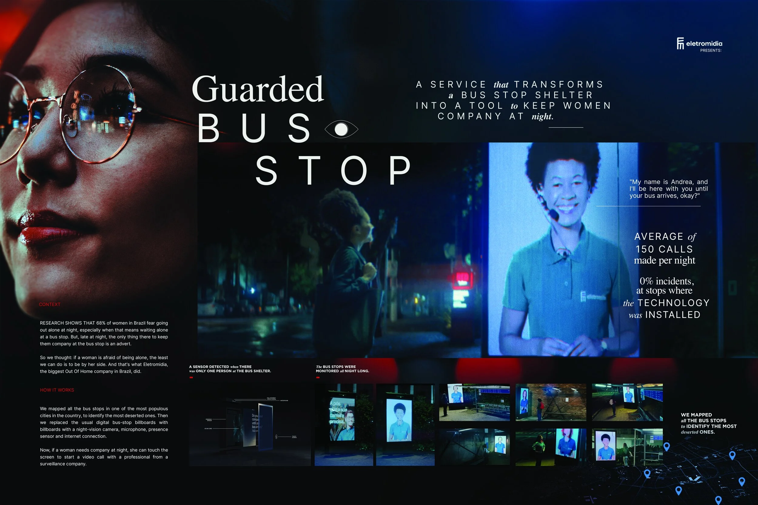For women who need to wait alone at night, we have transformed a simple shelter advertisement into a powerful tool to ensure their safety and security.
